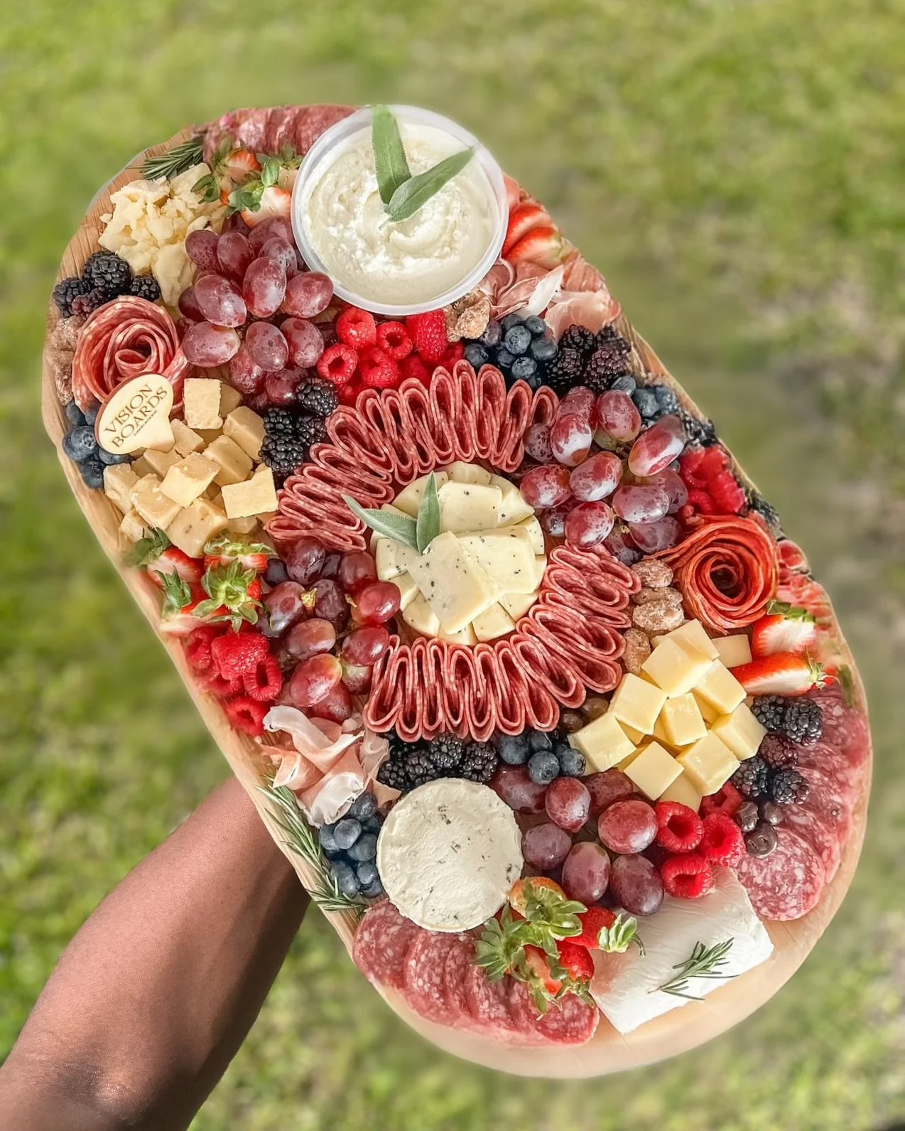 Our classic flat offering features all the essential fixings—fresh charcuterie, artisan cheeses, fresh fruit, nuts, crackers, and dips—artfully arranged for a stunning presentation.