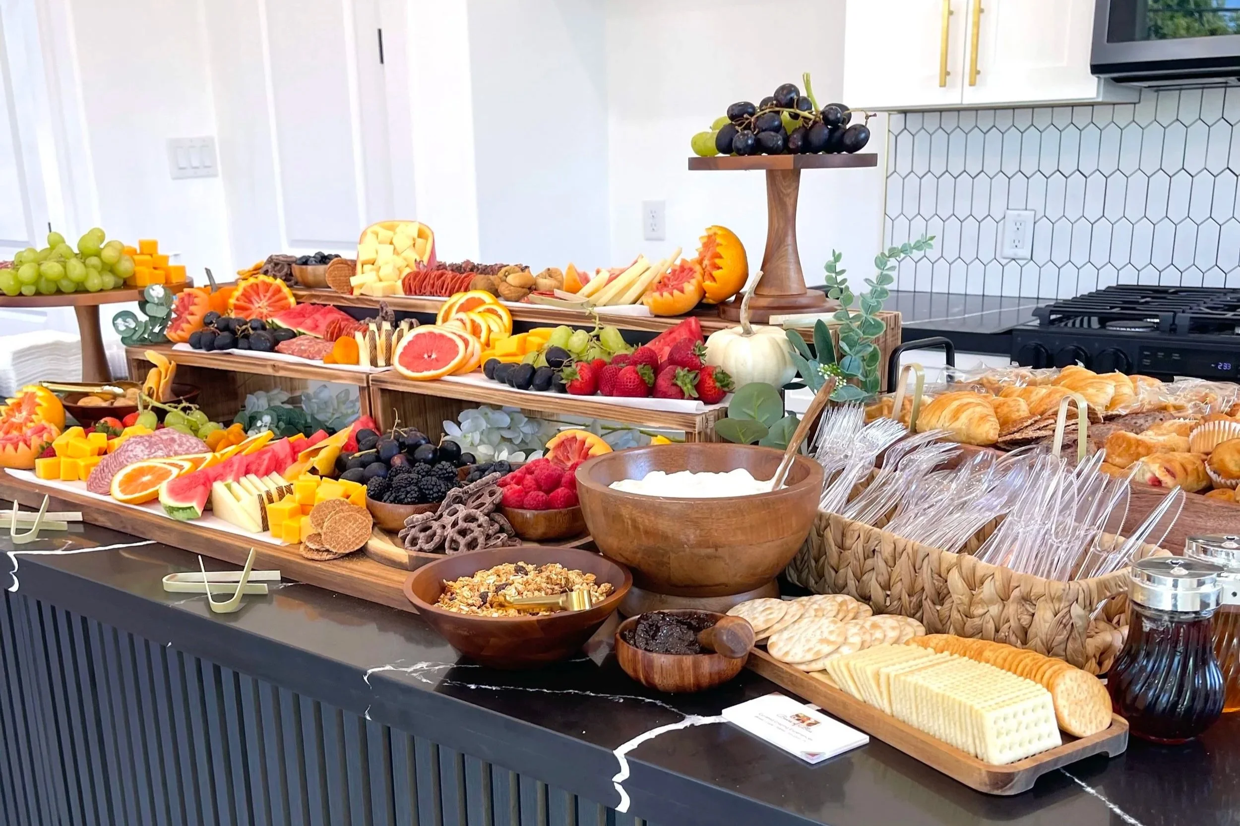 Our Brunch Bliss boards come with bagels, pastries, cheeses, and breakfast favorites. | Our Fruit Bliss boards come with fresh seasonal fruits styled beautifully. | Available in 10”, 13”, or 22”x12” sizes.
